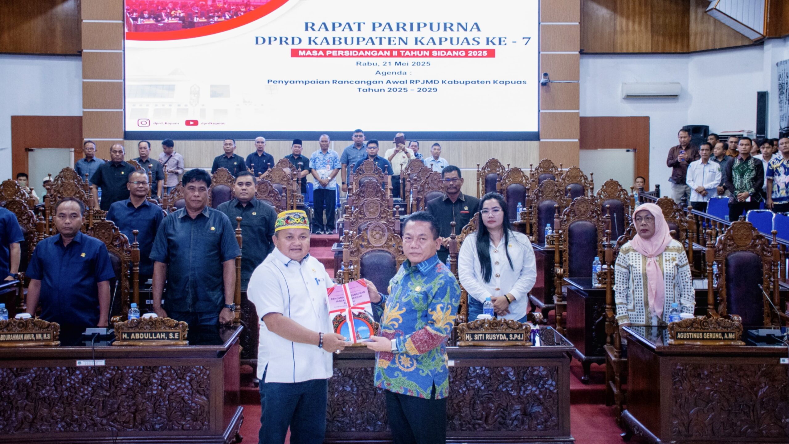 KUALAKAPUAS, Kalimantanlive.com – Bupati Kapuas HM Wiyatno menghadiri Rapat Paripurna ke 7 Masa Persidangan II Tahun Sidang 2025 dengan agenda Penyampaian Rancangan Awal RPJMD Kabupaten Kapuas Tahun 2025-2029 yang dipimpin oleh Ketua Dewan Perwakilan Rakyat Daerah (DPRD) Kapuas Ardiansah, bertempat di Ruang Rapat Paripurna DPRD Kapuas, Rabu (21/5/2025) malam.