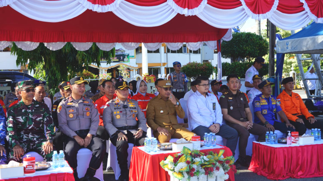 Acara dipimpin langsung oleh Kepala Kepolisian Resor (Kapolres) Kotabaru Ajun Komisaris Besar Polisi (AKBP) Doli M Tanjung SIK dan diikuti seluruh anggota Polres, Wakil Bupati Kotabaru Syairi Mukhlis, jajaran TNI, BPBD Kotabaru, Dishub, SKPD, dan pihak perusahaan.
