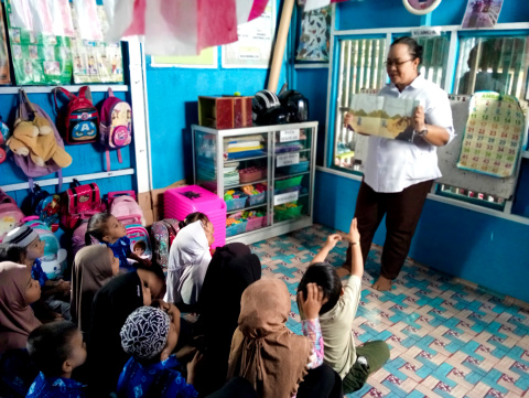 Kegiatan bercerita yang dibawakan oleh pustakawan Tiaman Gusti Ervina ini merupakan bagian dari program “jemput bola” yang digagas Dispersip Kotabaru. Program ini bertujuan untuk menumbuhkan minat baca anak sejak usia dini, dengan cara langsung mendatangi TK dan PAUD yang tersebar di berbagai wilayah.