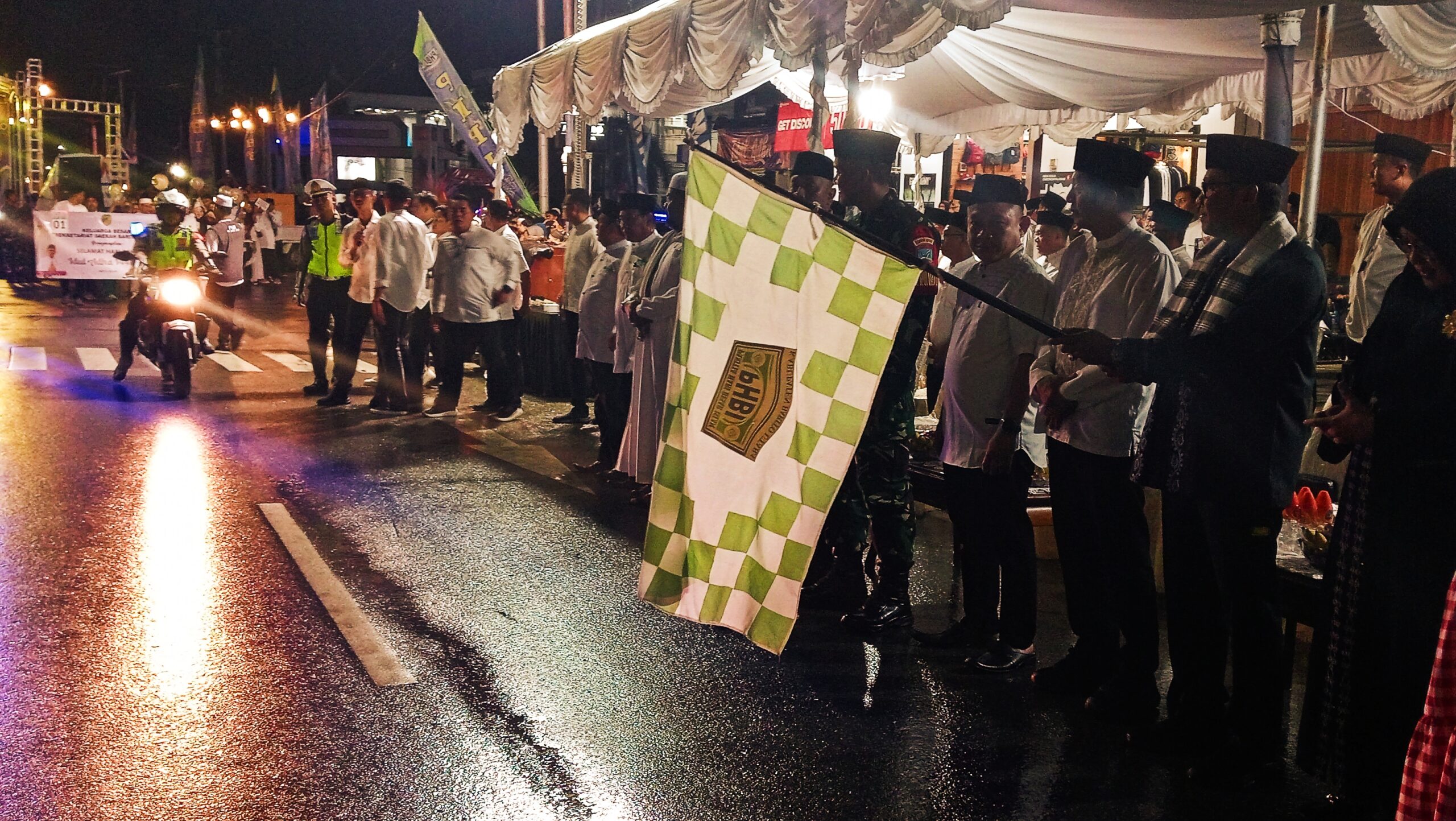 “Dengan mengucap bismillahirrahmanirrahim pawai idul adha 1446 Hijriyah ini saya lepas,” ucap Pj. Bupati Indra Gunawan sebelum mengibarkan bendera start.
