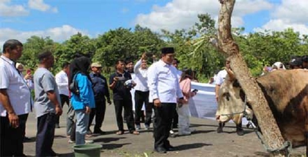 Penyerahan hewan kurban dilaksanakan di halaman Masjid Agung Ar-Raudhah, Pulang Pisau, pada Rabu (4/6/2025).