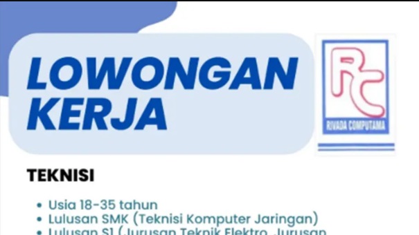 Kalimantanlive.com – Sedang mencari peluang kerja di bidang teknologi dan layanan komputer? CV. Rivada Computama kini membuka lowongan untuk posisi Teknisi Komputer, dengan batas akhir pengiriman lamaran hingga 18 Juni 2025.