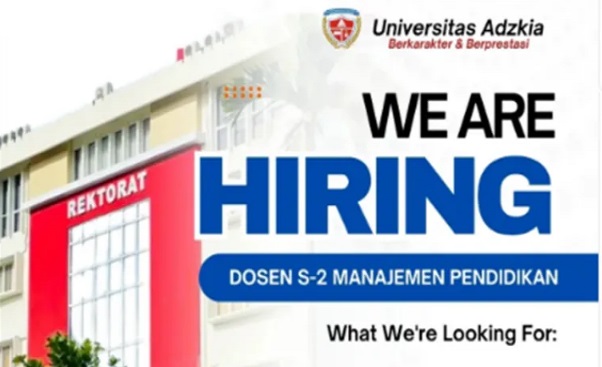 Kalimantanlive.com – Universitas Adzkia kembali membuka peluang bagi para akademisi yang ingin berkarier di dunia pendidikan tinggi dengan suasana Islami dan profesional. Saat ini, kampus yang berlokasi di Sumatera Barat tersebut membuka lowongan untuk posisi Dosen Tetap Program Studi Manajemen Pendidikan.