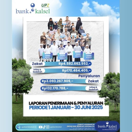 UPZ menyampaikan terima kasih kepada seluruh donatur, khususnya karyawan Bank Kalsel yang secara konsisten berkontribusi melalui pemotongan gaji bulanan.
