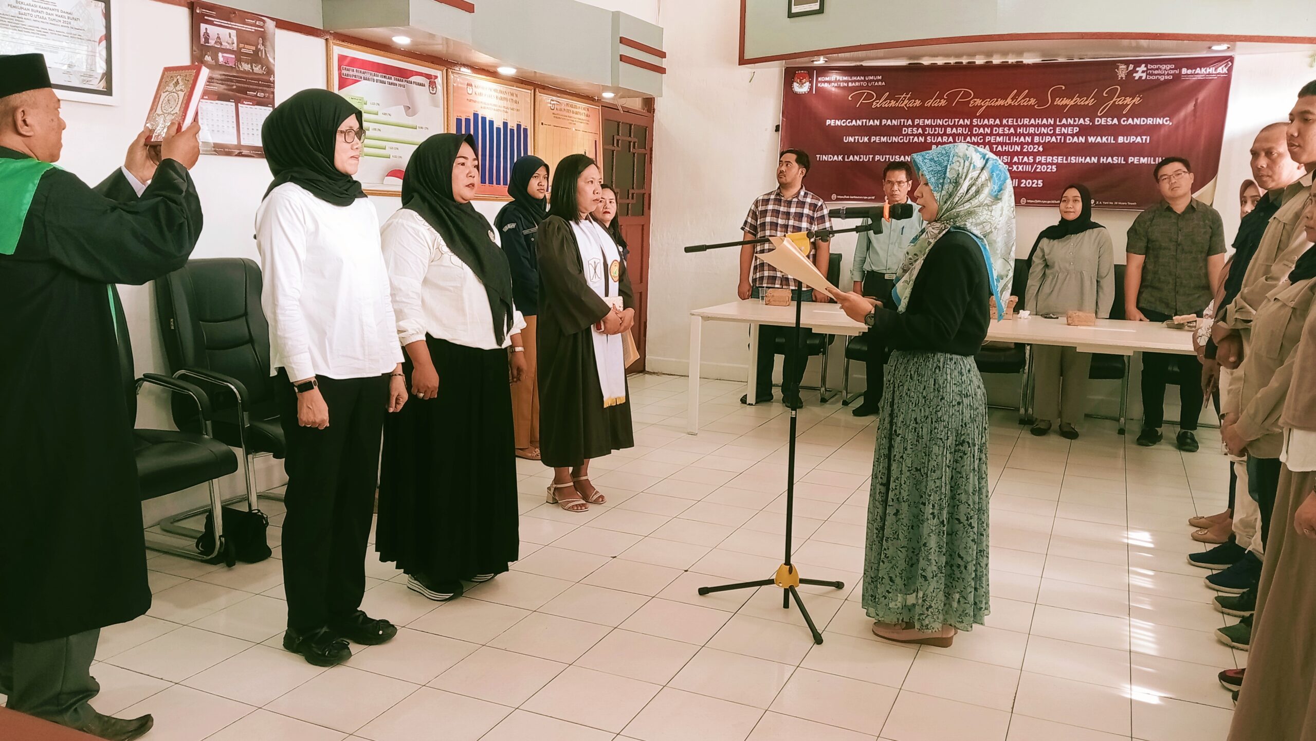 Pelantikan dan pengambilan sumpah janji tersebut dilaksanakan karena adanya pergantian anggota PPS, yaitu PPS Kelurahan Lanjas, Desa Gandring, Desa Juju Baru dan Hurung Enep.