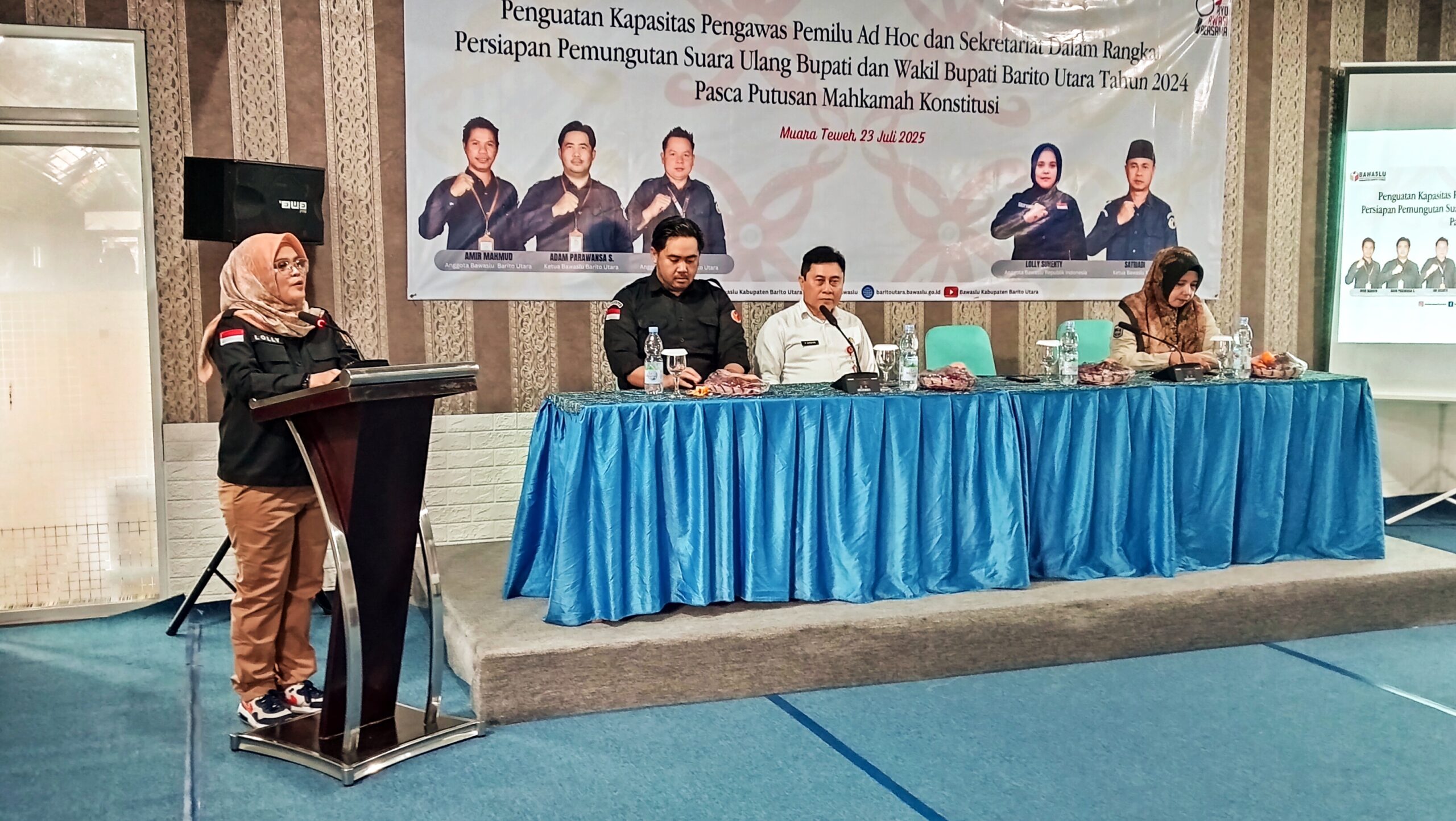 MUARA TEWEH, KALIMANTANLIVE.COM – “Karena PSU nya ekstra ordinary, luar biasa, bayangkan dari 13 gugatan hanya 1 Barito Utara yang mengalami fase harus melakukan Pemungutan Suara Ulang (PSU),” demikian ungkap Lolly Suhenty Anggota Bawaslu RI pada kegiatan Penguatan Kapasitas Pengawas Pemilu Ad Hoc dan Sekretariat, dalam rangka Pemungutan Suara Ulang (PSU) Bupati dan Wakil Bupati Barito Utara di aula Hotel Senyiur, Muara Teweh, pagi (23/7/2025).