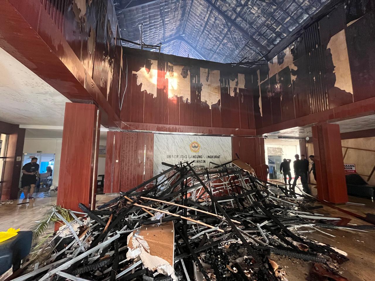 Sebelumnya, Iwan mengatakan bahwa yang terbakar adalah bangunan dibagian gedung kiri, yang merupakan ruangan bekas aula, yang kini difungsikan sebagai ruangan akademik dan kemahasiswaan.