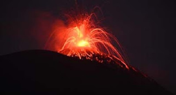 Letusan disertai lontaran lava pijar setinggi 200 meter dari kawah serta suara dentuman keras yang mengguncang kaca rumah warga sekitar.