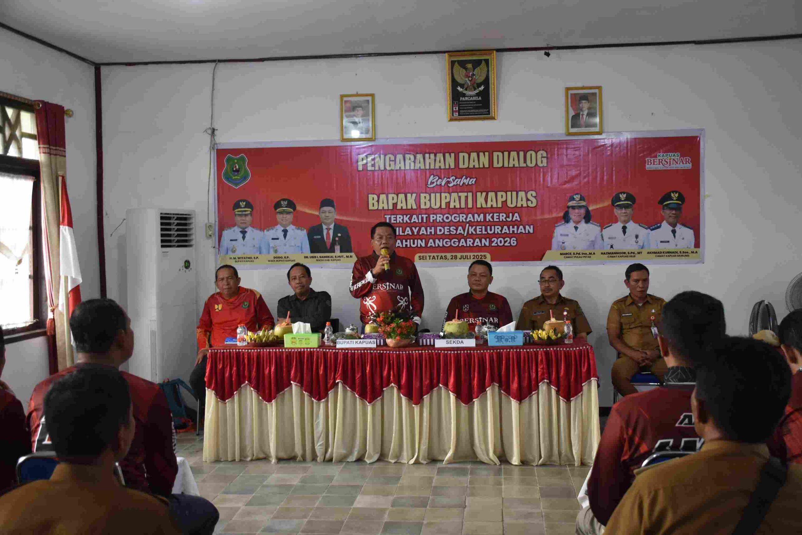 Dalam suasana dialog yang penuh keakraban, Bupati Kapuas HM Wiyatno memberikan pengarahan dan berdialog bersama para undangan yang hadir terkait program kerja diwilayah desa/kelurahan tahun anggaran 2026.