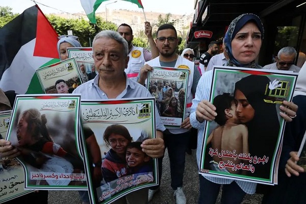 Di Kota Nablus, Tepi Barat, warga Palestina turun ke jalan menyuarakan penolakan terhadap agresi militer yang terus berlangsung di Gaza. Mereka menuntut diakhirinya kekerasan dan perlindungan terhadap warga sipil.