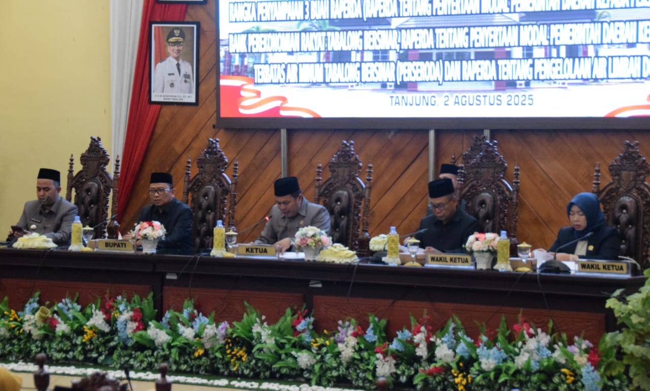 TANJUNG, KALIMANTANLIVE.COM – Tiga Rancangan peraturan daerah (Raperda) disampaikan Bupati Tabalong, H Muhammad Noor Rifani dalam Rapat Paripurna di Ruang Rapat Paripurna DPRD setempat, Sabtu (2/8/2025).
