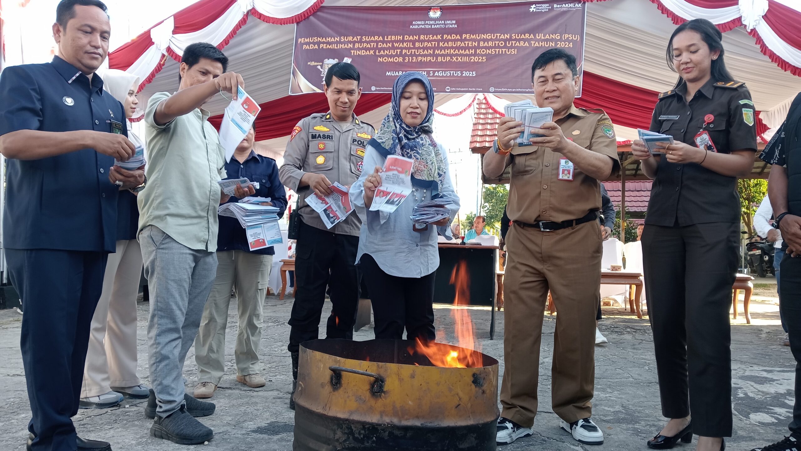 Acara pemusnahan inipun dilakukan secara transparan sehingga KPU Kabupaten Barito Utara tidak ada lagi menyimpan surat suara pelaksanaan PSU Bupati dan Wakil Bupati Kabupaten Barito Utara.