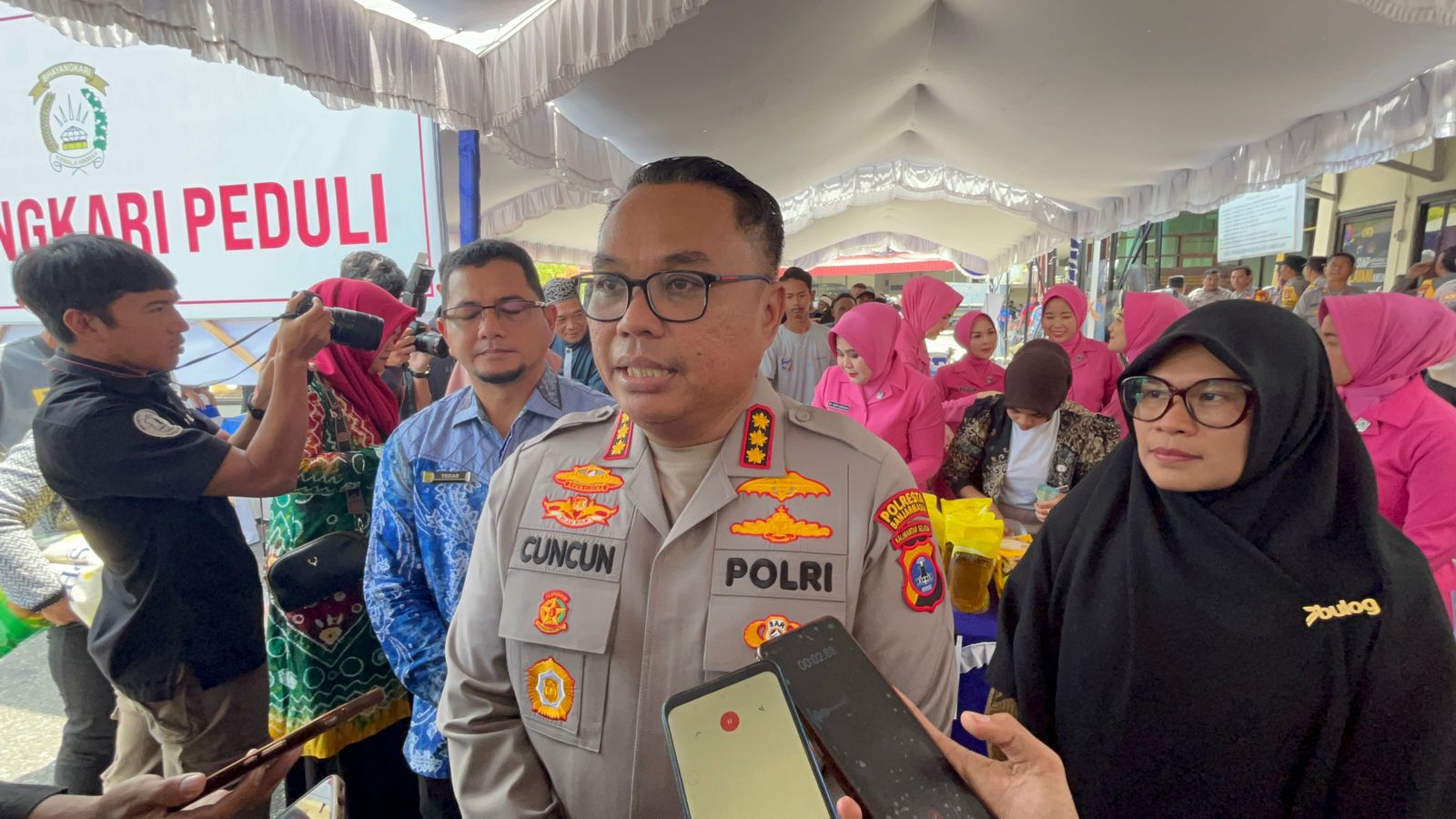 Kapolresta Banjarmasin, Kombes Pol Cuncun Kurniadi mengatakan dalam kegiatan ini pihaknya menyalurkan 200 sak beras SPHP Bulog, masing-masing berisi 5 kilogram, dengan total sekitar 1 ton beras.