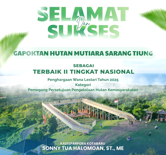 KOTABARU, Kalimantanlive.com – Dinas Pariwisata Pemuda dan Olahraga (Disparpora) Kabupaten Kotabaru memberikan ucapan selamat ke Gapoktan Hutan Mutiara, Desa Sarang Tiung, Kecamatan Pulau Laut Sigam.