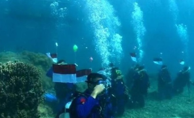 “Alhamdulillah, momen 17 Agustus kali ini sungguh luar biasa. Selain menumbuhkan cinta tanah air, kami juga bisa memantau kondisi terumbu karang yang ada di bawah laut,” katanya.