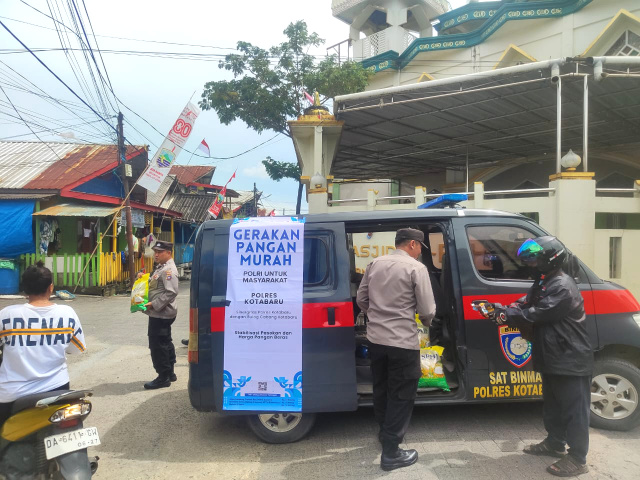 KOTABARU, Kalimantanlive.com – Satuan Binmas Polres Kotabaru kembali melaksanakan Gerakan Pangan Murah Polri