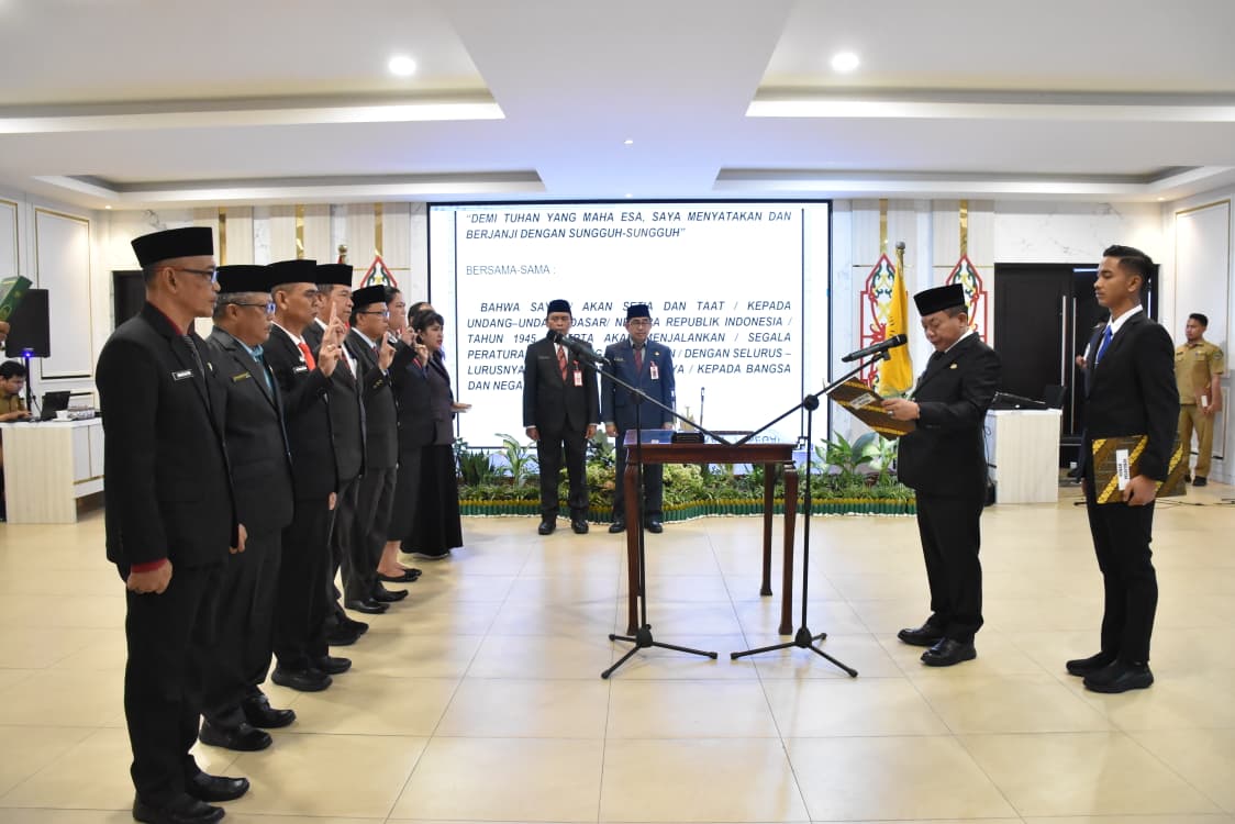 KUALA KAPUAS, Kalimantanlive.com – Bupati Kapuas, H. Muhammad Wiyatno, SP., melantik dan mengambil sumpah/janji tujuh pejabat pimpinan tinggi pratama di lingkungan Pemerintah Kabupaten Kapuas, bertempat di Ruang Rapat Rumah Jabatan Bupati Kapuas, Senin (25/8/2025).