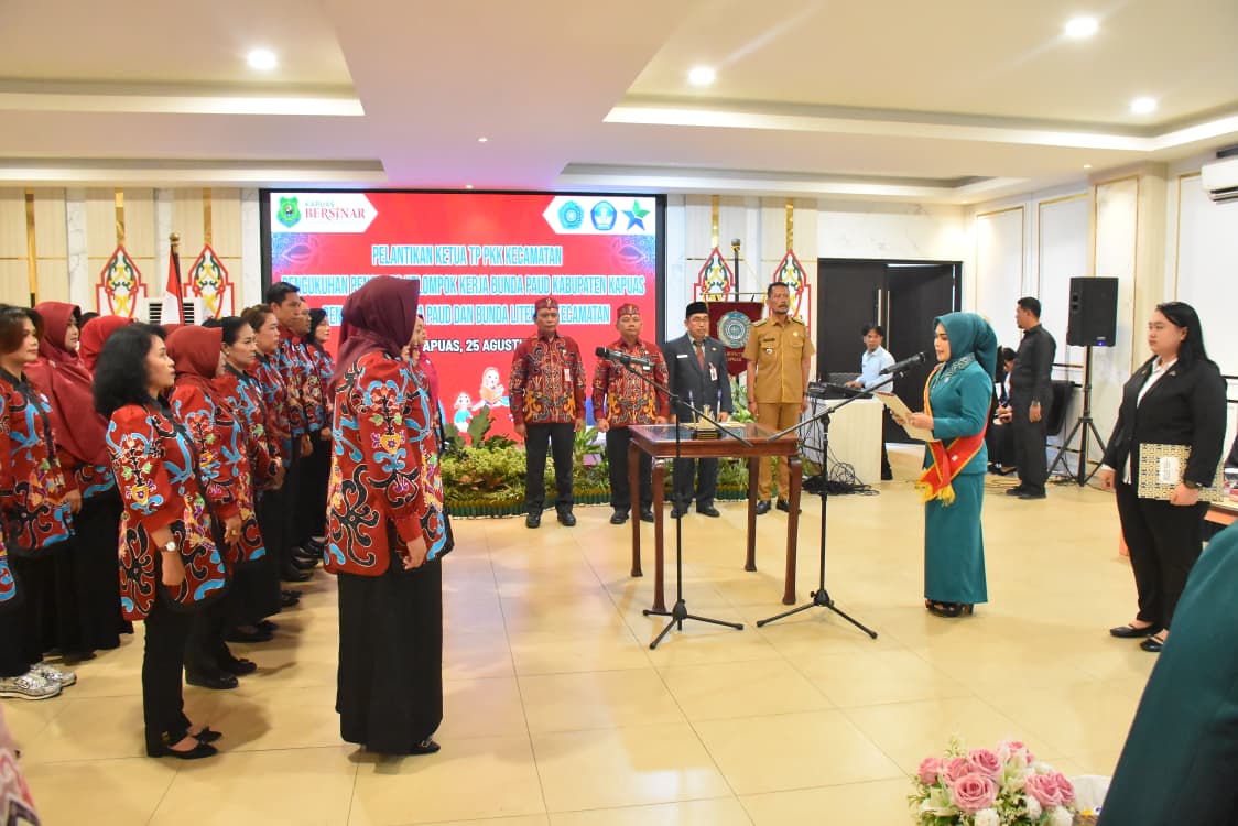 Ketua TP PKK Kabupaten Kapuas, Siti Saniah Wiyatno, dalam sambutannya menekankan bahwa pelantikan dan pengukuhan ini bukan hanya seremonial, melainkan momentum penting dalam estafet kepemimpinan gerakan PKK, Bunda PAUD, dan Bunda Literasi di Kapuas.