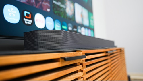 Desain polygonal sound shape + SmartThings Hub, AirPlay2, HDMI 2.1 (4K 120Hz).