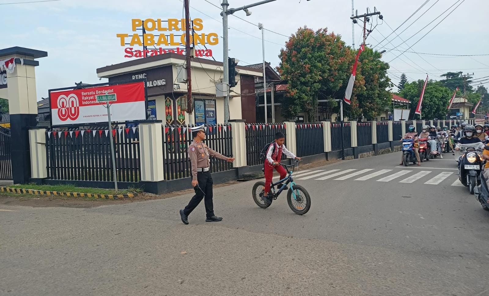 Selain mengatur arus kendaraan, petugas juga turut membantu anak-anak sekolah yang hendak menyeberang jalan. Kehadiran polisi di lapangan diharapkan memberikan rasa aman sekaligus menjadi bentuk kepedulian Polri terhadap keselamatan generasi muda.