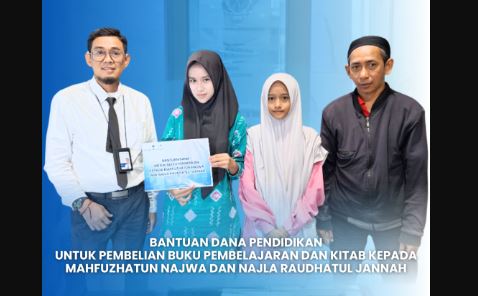 BANJARMASIN, Kalimantanlive.com – Bank Kalsel melalui Unit Pengumpul Zakat (UPZ) kembali menyalurkan bantuan pendidikan kepada dua anak dari keluarga kurang mampu, Mahfuzhatun Najwa dan Najla Raudhatul Jannah.