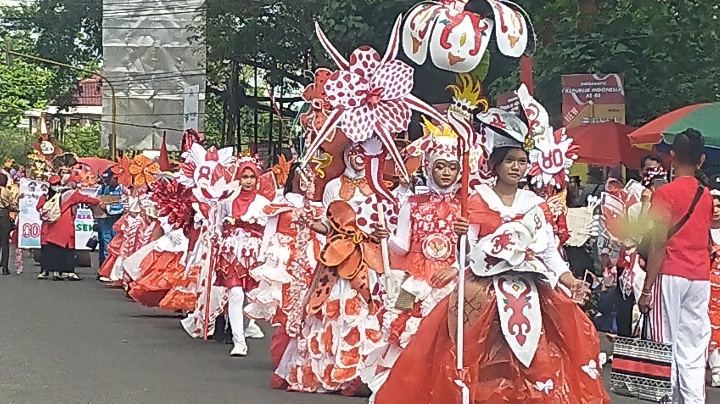 Sementara itu, peserta pawai pembangunan pun tampak kreatif dalam menyuguhkan penampilan mereka dalam pawai pembangunan tersebut, karena pakaian dan aksesoris yang ditampilkan unik-unik.