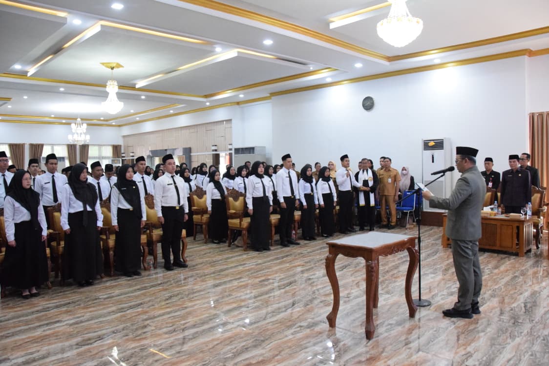 Prosesi pelantikan dan pengambilan sumpah janji serta penyerahan SK pengangkatan ini berlangsung di Balai Dandung Suchrowardi di Kompleks Pendopo Bersinar, Senin (1/9/2025).