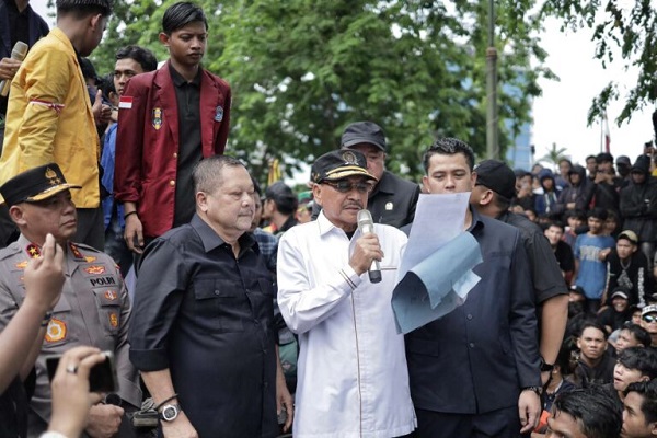 Dalam aksi yang berlangsung sekitar empat jam dengan pengamanan humanis aparat kepolisian, massa yang terdiri dari mahasiswa, pengemudi ojek online, dan masyarakat menyampaikan tujuh tuntutan.