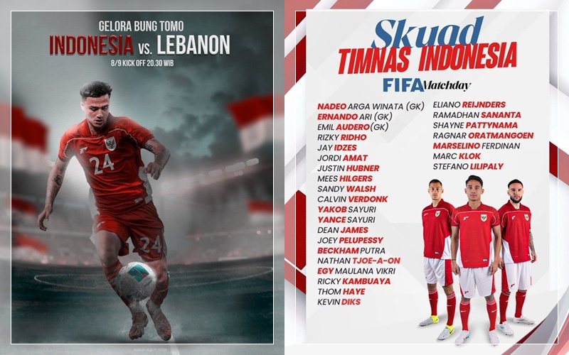 KALIMANTANLIVE.COM – Timnas Indonesia bersiap menghadapi Lebanon dalam lanjutan FIFA Matchday September 2025, yang digelar di Stadion Gelora Bung Tomo, Surabaya, Senin (8/9/2025) pukul 20.30 WIB.