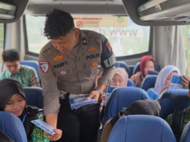 Selain menyapa para pengemudi, jajaran Satlantas juga memberikan edukasi tentang pentingnya mengutamakan keselamatan di jalan.
