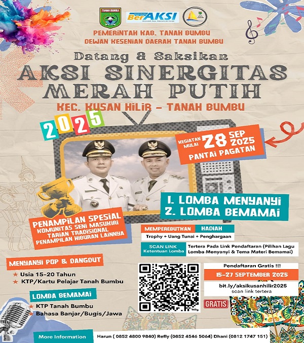 1. Lomba Menyanyi Pop dan Dangdut (usia 15–20 tahun, peserta wajib memiliki KTP/Kartu Pelajar Tanah Bumbu).