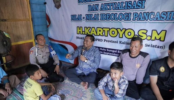 KANDANGAN, Kalimantanlive.com – Wakil Ketua DPRD Provinsi Kalimantan Selatan, H. Kartoyo, S.M., melaksanakan Sosialisasi Revitalisasi dan Aktualisasi Nilai Ideologi Pancasila (Sosrev) di Desa Tanah Bangkang, Kecamatan Sungai Raya, Sabtu (13/9/2025).