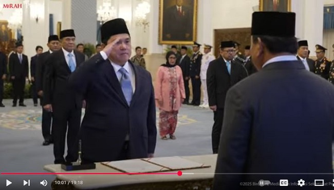Dalam prosesi itu, yang berlangsung tepat pada pukul 15.00 WIB, Presiden Prabowo memimpin pengambilan sumpah pejabat-pejabat baru tersebut.
