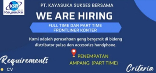 PT Kayasuka Sukses Bersama Buka Lowongan Frontliner Konter, Cocok untuk Mahasiswa Part-Time