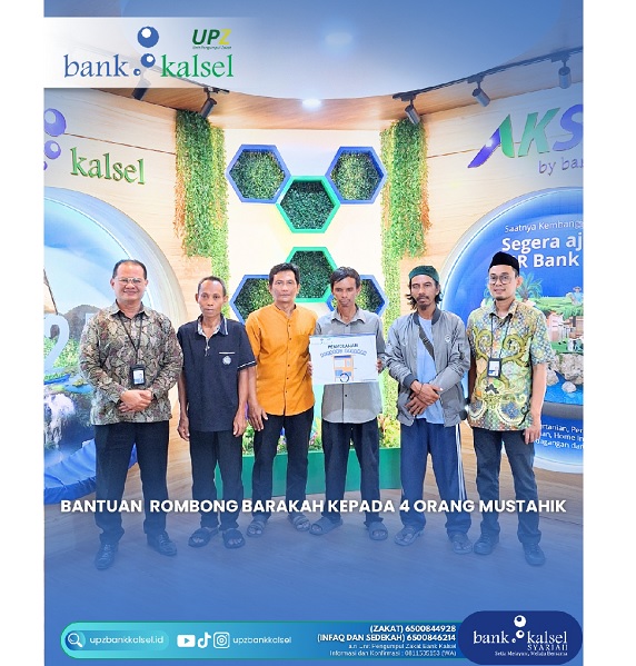 Bantuan ini disalurkan melalui Unit Pengumpul Zakat (UPZ) Bank Kalsel, dengan penyerahan simbolis yang dilakukan di Kantor Pusat Bank Kalsel oleh Kepala Cabang Utama H. Suriadi dan Ketua UPZ Doso Setiawan.