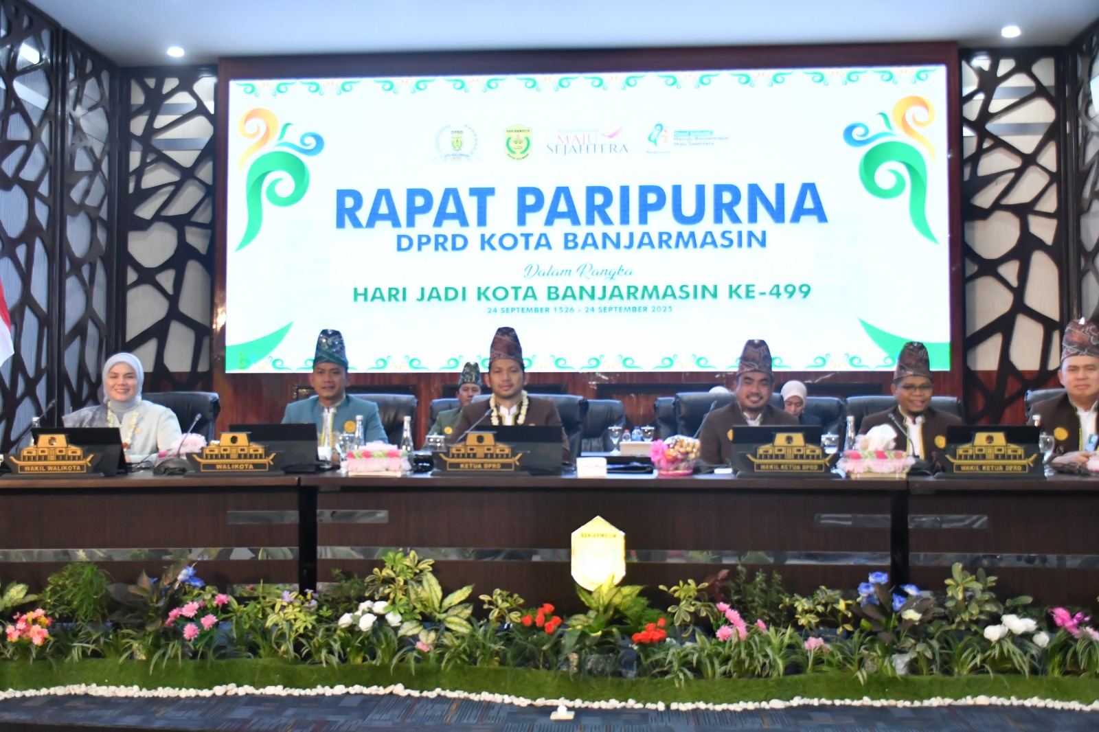 BANJARMASIN, Kalimantanlive.com – Wali Kota Banjarmasin, H. Muhammad Yamin HR menghadiri rapat paripurna DPRD Kota Banjarmasin dalam rangka memperingati Hari Jadi ke-499 Kota Banjarmasin, yang berlangsung di ruang rapat paripurna DPRD, Rabu (24/9/25).