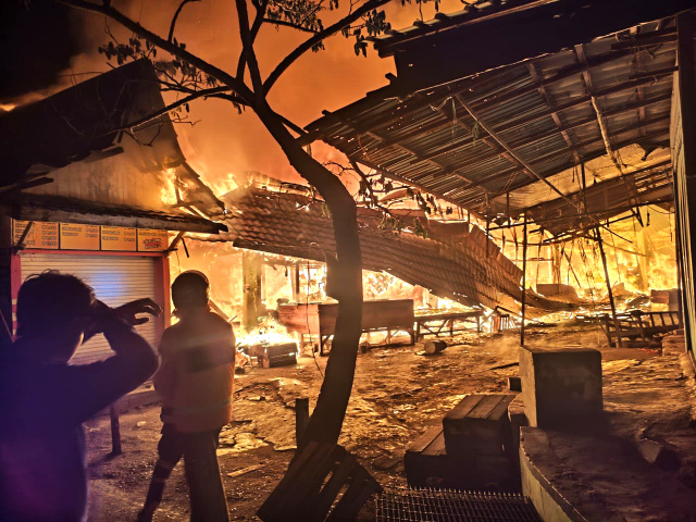 KOTABARU, Kalimantanlive.com – Kebakaran hebat meluluhlantakkan puluhan kios kembali terjadi di Kompleks Pasar Kemakmuran, Kelurahan Kotabaru Hulu, Kecamatan Pulau Laut Utara Kotabaru, Senin malam (29/9/2029).