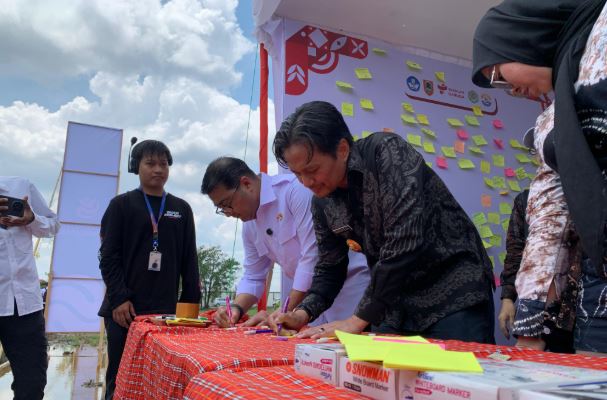 Peluncuran sekaligus pengenalan SMA Garuda Kalsel dihadiri Menteri Ekonomi Kreatif (Ekraf) Indonesia, Teuku Riefky Harsya, Gubernur Kalimantan Selatan H Muhidin, dan Wagub Kalsel Hasnuryadi Sulaiman di SMA Banua, Gambut, Rabu (8/10/2025).