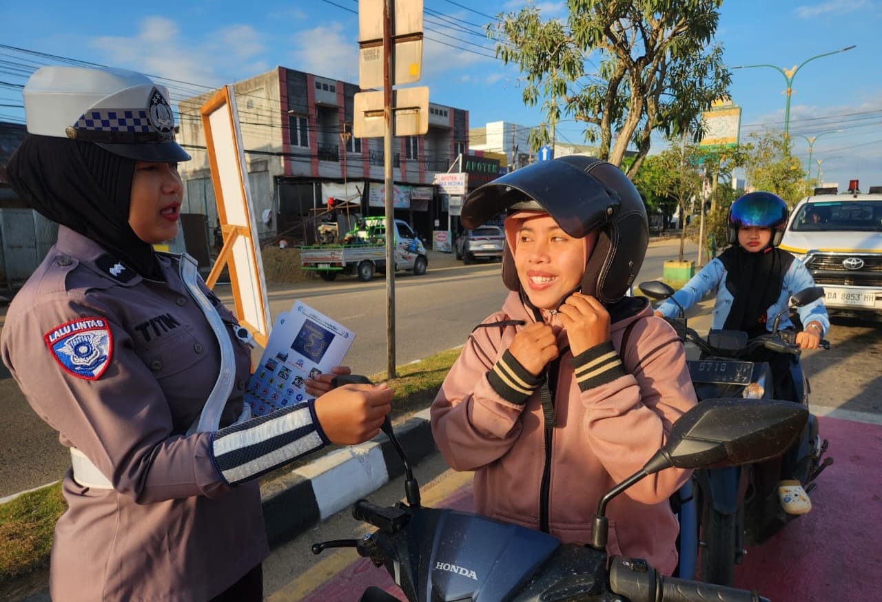 Imbauan tersebut meliputi kewajiban menggunakan helm berstandar SNI, larangan menggunakan ponsel saat berkendara, tidak melawan arus lalu lintas serta pentingnya membawa dan melengkapi dokumen kendaraan seperti SIM dan STNK.