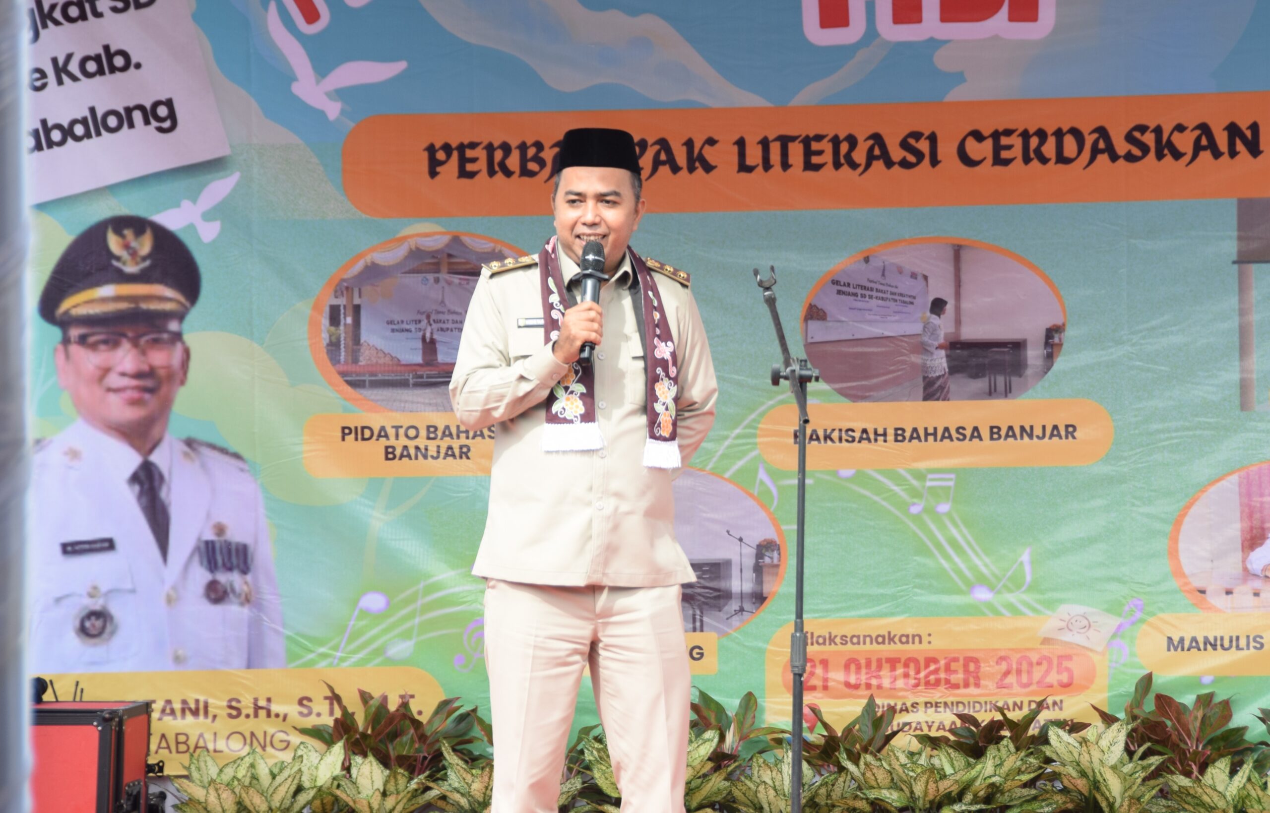 TANJUNG, KALIMANTANLIVE.COM – Seratus lebih peserta didik tingkat SD se-Kabupaten Tabalong mengikuti Festival Tunas Bahasa Ibu (FTBI) 2025 di halaman Dinas Pendidikan dan Kebudayaan (Disdikbud) setempat, Selasa (21/10/2025).