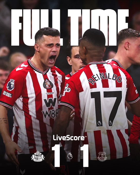 Tertinggal di babak pertama, Sunderland tampil menggila di paruh kedua. Tekanan demi tekanan terus dilancarkan, hingga akhirnya sang kapten, Granit Xhaka, menjadi penyelamat. Satu menit setelah jeda, sepakan first time-nya dari luar kotak penalti menghantam jala Everton, memaksa skor kembali imbang 1-1.