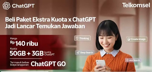 Paket ChatGPT Go Telkomsel dibanderol Rp 75.000, sama seperti tarif resmi OpenAI, namun dengan tambahan manfaat spesial: