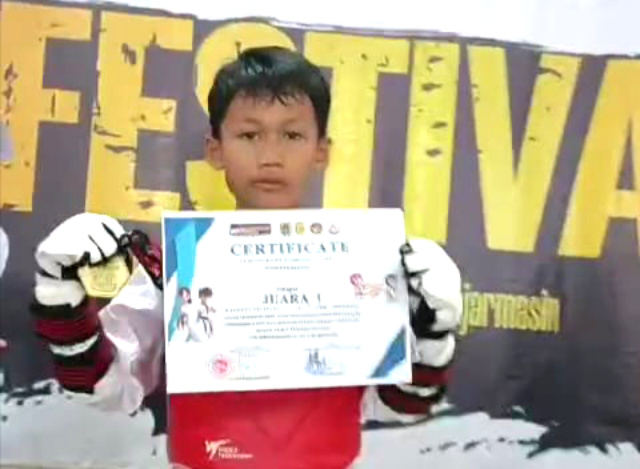 Narotama siswa kelas 1 di sekolah itu, meraih prestasi gemilang di pertandingan Taekwondo pada event “Kids Open Turnamen Festival” yang digelar di GOR SKB Mulawarman, Banjarmasin belum lama tadi.
