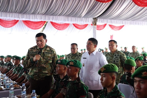 Pada kesempatan itu Menhan RI juga memberikan pengarahan kepada prajurit Yon TP 828/BWM. Selanjutnya menuju lokasi pembangunan Yonif TP 828/BWM sekaligus meninjau lokasi tersebut.