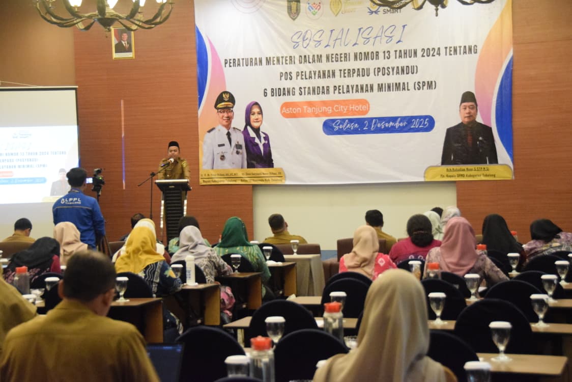 TANJUNG, KALIMANTANLIVE.COM – Dinas Pemberdayaan Masyarakat dan Desa (DPMD) Kabupaten Tabalong mensosialisasikan Peraturan Menteri Dalam Negeri RI (Permendagri) Nomor 13 tahun 2024 tentang Posyandu di Aston Tanjung City Hotel, Selasa (2/12/2025).