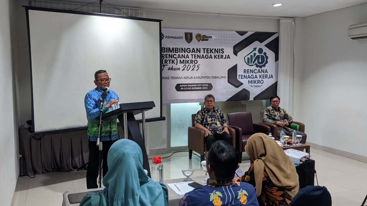 TANJUNG, KALIMANTANLIVE.COM – Bimbingan teknis (Bimtek) Rancangan Tenaga Kerja (RTK) Mikro digelar Dinas Tenaga Kerja (Disnaker) Kabupaten Tabalong di Aston Tanjung City Hotel, Kamis (4/12/2025).