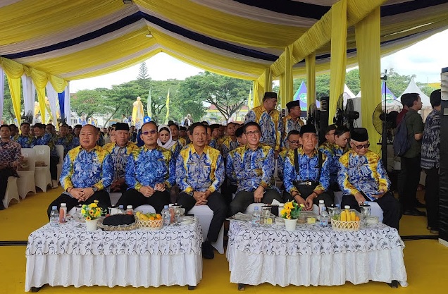 TAPIN, Kalimantanlive.com — Bank Kalsel menunjukkan perannya sebagai mitra strategis pemerintah daerah dengan aktif mendukung rangkaian peringatan Hari Jadi Kabupaten Tapin ke-60. Kehadiran jajaran direksi, termasuk Direktur Utama Fachrudin, Direktur Bisnis Ahmad Fauzi Noor, dan Direktur Kepatuhan Mitra Damayanti, di puncak perayaan yang digelar di Halaman Kantor Bupati Tapin, Minggu (30/11/2025), menegaskan komitmen bank untuk mendorong pertumbuhan ekonomi, kesejahteraan masyarakat, dan penguatan UMKM lokal.