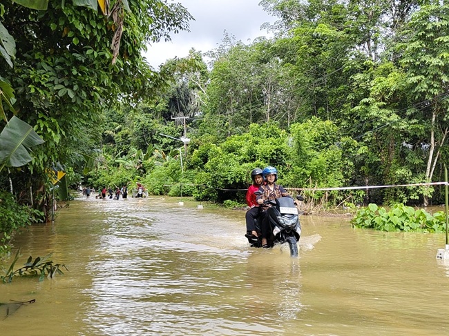 “Untuk jalan masih bisa dilewati, airnya sekitar di atas mata kaki,” jelas Mahdiansyah.