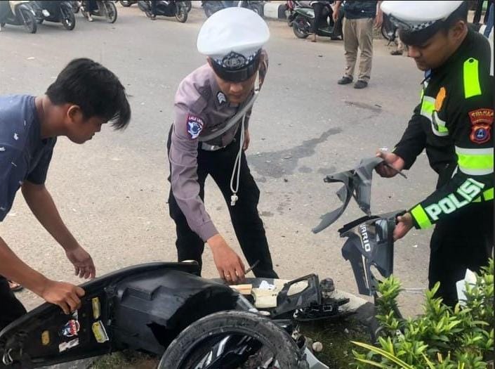Berdasarkan hasil pengamatan awal, kondisi jalan di lokasi kejadian lurus dengan permukaan aspal kering. Dugaan titik tabrak berada di area putar balik saat salah satu pengendara hendak berbelok.