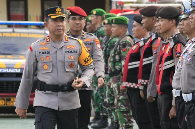 Apel dipimpin langsung Kapolres Balangan, AKBP Yulianor Abdi, serta dihadiri unsur Forum Koordinasi Pimpinan Daerah (Forkopimda). Kegiatan tersebut melibatkan personel gabungan lintas sektoral dari Kodim 1001/HSU-BLG, Polres Balangan, Satpol PP, Dinas Kesehatan, Dinas Perhubungan, BPBD, Pramuka, serta instansi terkait lainnya.